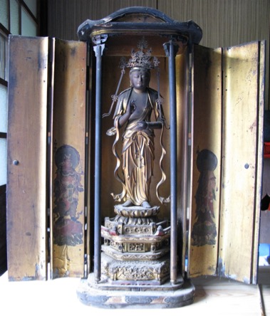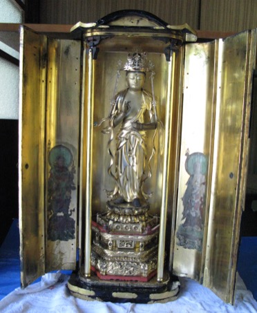 真言宗智山派寶龍寺様 観音像洗浄 before after洗浄 真言宗さんは護摩を焚かれるのでかなり仏像にも煤が付着します。今回の観音様も全体にかなり煤が付いていました。洗浄のみでかなり汚れが落ち本来の輝きが戻りました。基本的には他には手を加えておりません。