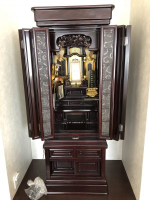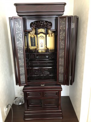 仏壇洗浄 指田様 befor after 購入してまだ5年ですが、お母様が亡くなられて仏様となってご先祖様のお家に入るため少しでも綺麗にしてあげたいとのことで依頼を受けました。汚れはそれほど無くホコリ取りがメインになりました。時間が余りましたのでたくさんサービスさせていただきました。大変喜ばれて親戚の方にもおすすめしてくれるとのことでした。