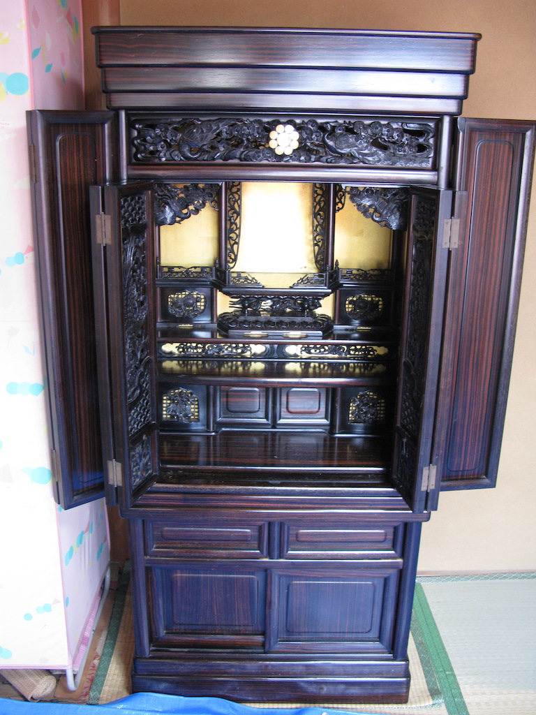 仏壇洗浄 石井様 befor after春彼岸までに洗浄 新仏様が入るご先祖様のおうちをきれいにしてほしいとのご依頼でした。黒檀の仏壇はそれほど汚れていないように見えましたが、洗浄してみるとやはり汚れが付着していました。49日前に綺麗にしたいとお願いされる方は、基本ご先祖様を大切にされる方々なのでお線香は毎日炊いてたそうです。汚れをとってツヤ出しをすると本来ある縞模様がさらにくっきりしてきました。やってよかったわと言われて嬉しかったです。