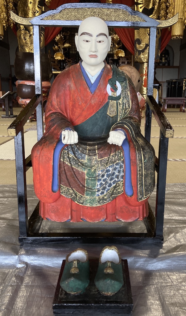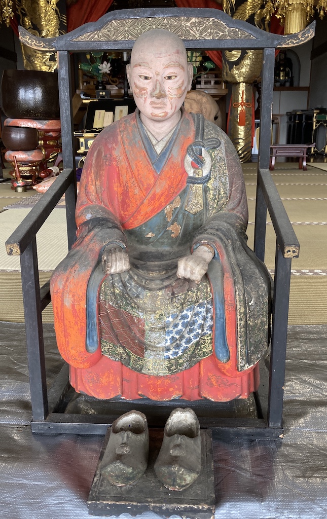 逍遥院様の御開山像を綺麗にさせていただきました。仏像クリーニングの9割はお寺さんからの紹介です。逍遥院さんも紹介していただきました。ほぼお任せでしたのでどのくらいまで手を加えていいか聞きながら施工しました。一番気になるところはお顔でした。御開山様は、細かった方だったのか頬が窪んでいました。そこのところが剥がれていました。仏像の中に書き物が入っており逍遥院12世の時代(330年前)に筆頭総代の方が娘さんの供養のために御開山像を寄進したことが書かれておりました。現在の和尚さんが26世ですのかなり長い間安置されておりました。その割りには程度が良かったのであまり変わりばえせず仕上げることが出来ました。