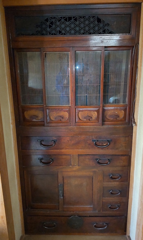 戦時中に爆弾の破片に被弾した仏壇でした。引き出し裏に昭和12年と書かれていました。かなり古くなってましたがしっかりしてたのでお洗濯ではなくてクリーニングである程度いけると判断しました。側面のヒビをパテを入れて直し、金紙を交換。と思ったらこの仏壇は金紙ではなくて金箔でした。金箔用洗剤を持ってきていて良かったです。汚れを落とし紗を交換して艶を出すとかなり綺麗になりました。ご先祖さんも喜んでくれているだろうねと施主さんが言ってました。