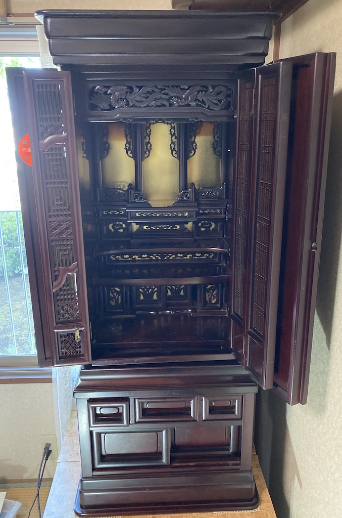 仏壇クリーニング 山本様 befor after将来姪っ子に引き渡すので仏壇を綺麗にしてほしい 旦那さんが他界されて仏壇を綺麗にしてほしいとご依頼がありました。お子さんがいなくて将来姪っ子に仏壇を引き渡す予定なので私が生きている間に綺麗にしておきたいとのことでした。金紙の交換、紗の交換、全体の洗浄艶出しをしたらすっかり綺麗になり、これで引き渡せるわと満足しておられました。