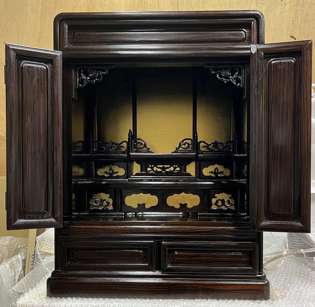 仏壇クリーニング 植田様 befor afterおじいさんの大切にしていた仏壇を綺麗にしてほしい 思い入れのある仏壇を何とか綺麗にしてほしいとお願いされました。普通に考えるとお焚き上げしても良さそうですが、クリーニングでここまできれいにすることができました。なかば諦めて新しいお仏壇を買おうか迷っていたそうですがすごくきれいになり大変喜ばれておりました。今後ともおじいさんの買われた仏壇を大切にお守りしてください。ありがとうございました。