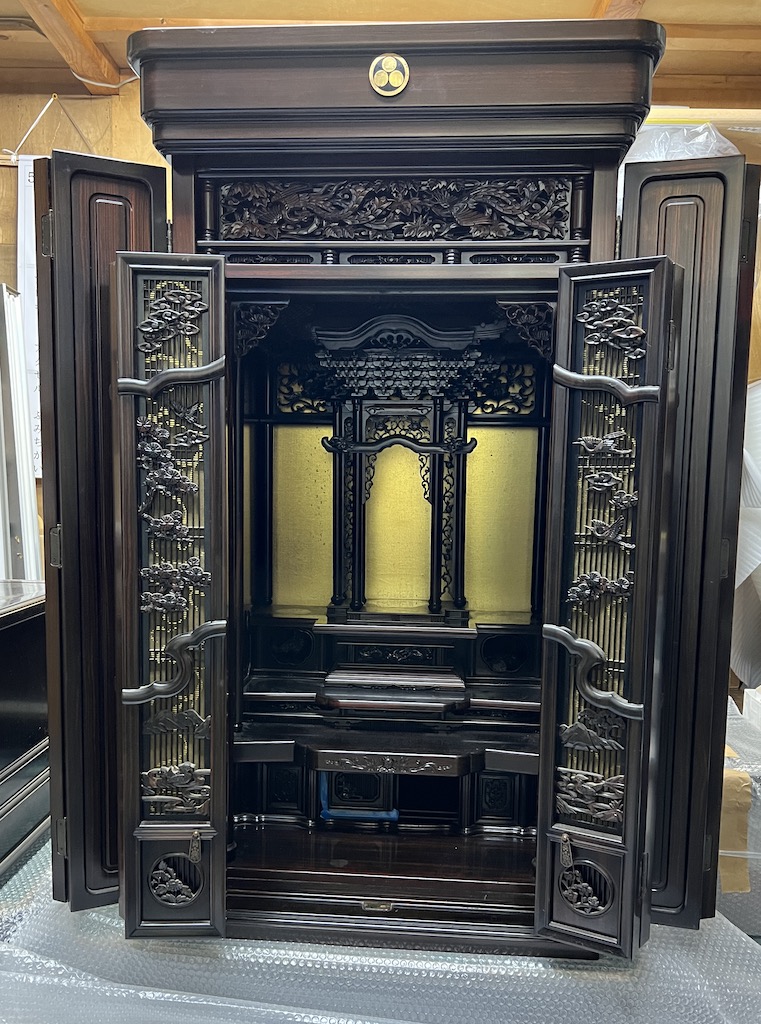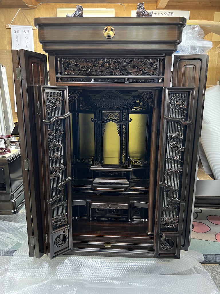 仏壇洗浄 田中様 befor after引っ越しするので綺麗にしたい 仏壇屋さんの元店長さんから親戚の仏壇を綺麗にして欲しいとご依頼がありました。仏壇屋さんの倉庫で洗浄しました。納品には同行しませんので雰囲気は分かりませんが喜んでもらえたら嬉しいです。元店長さん、退職なされたそうで今までお世話になりありがとうございました。m(_ _)m