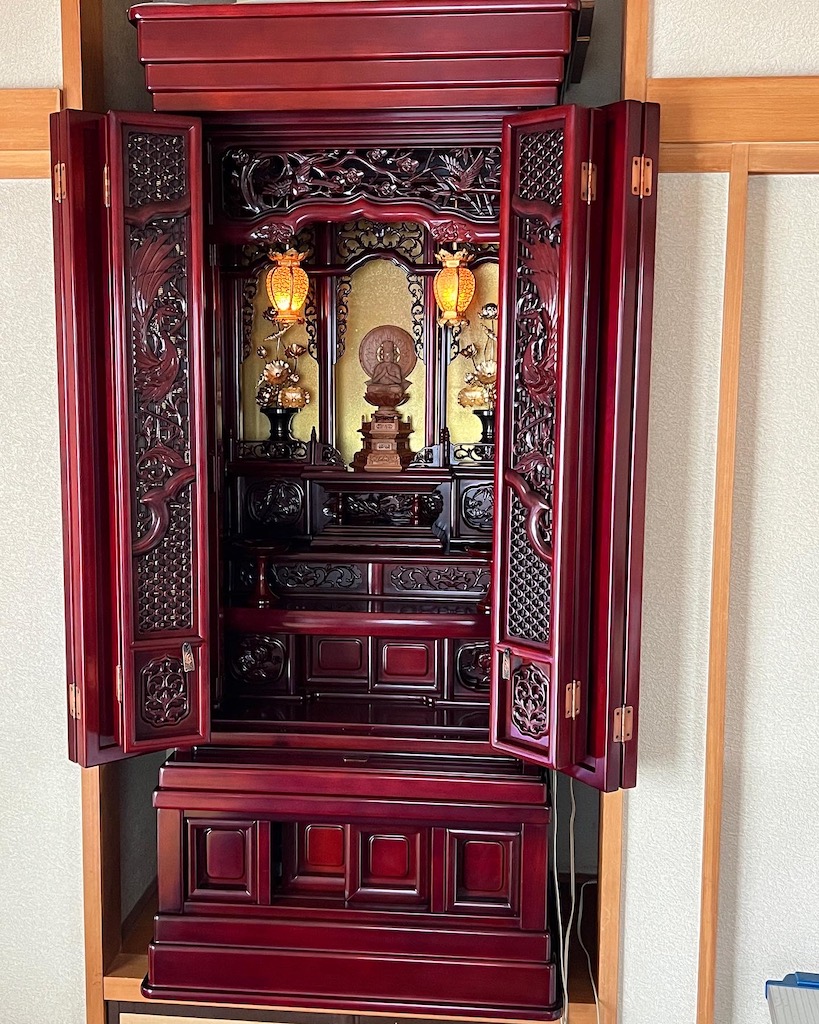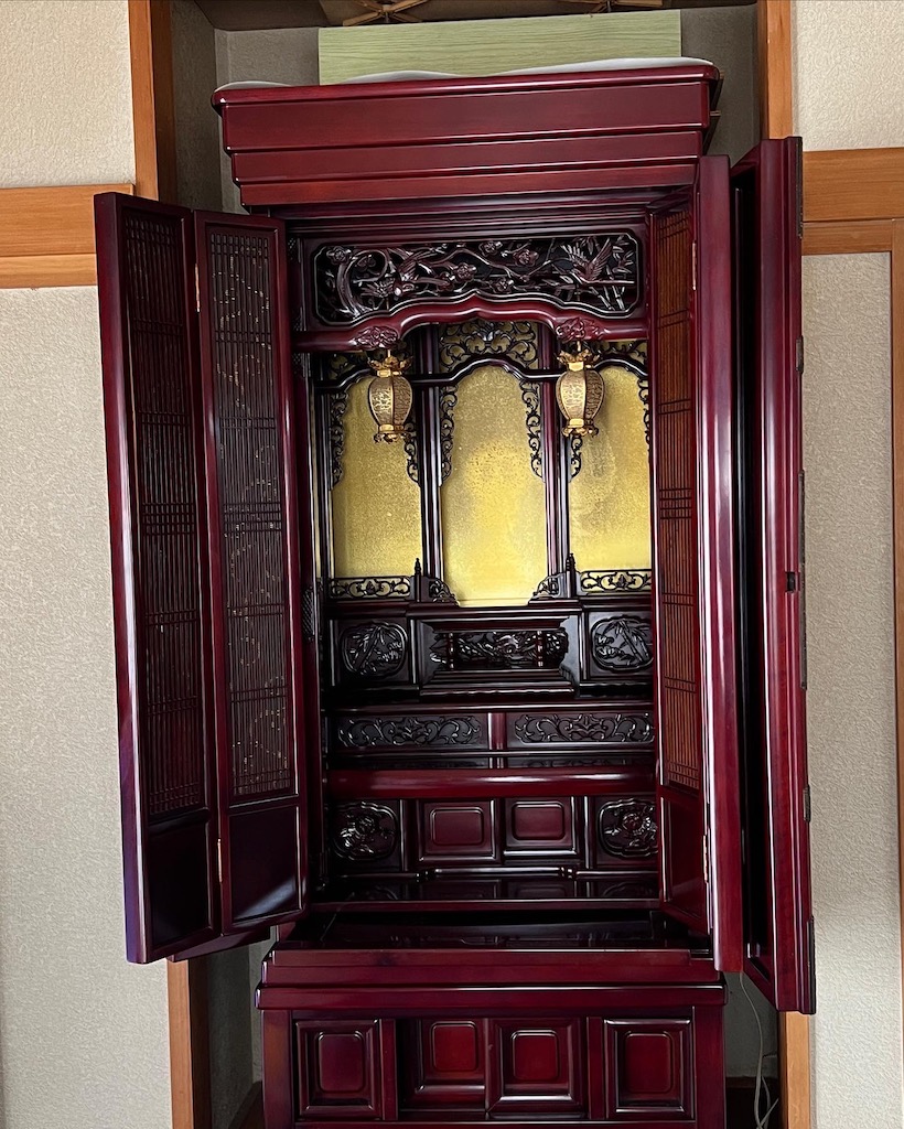 奥様が亡くなられて仏壇を綺麗にしてから送りたいと旦那さんからご依頼がありました。それほど傷んでませんでしたが30年は経過してるとの事でしたので洗浄艶出し、紗を交換しました。まだ落ち込んでたみたいなのであまり話かけずに作業しましたが完成後には綺麗になって笑ってもらえたのが印象的でした。ありがとうございました。