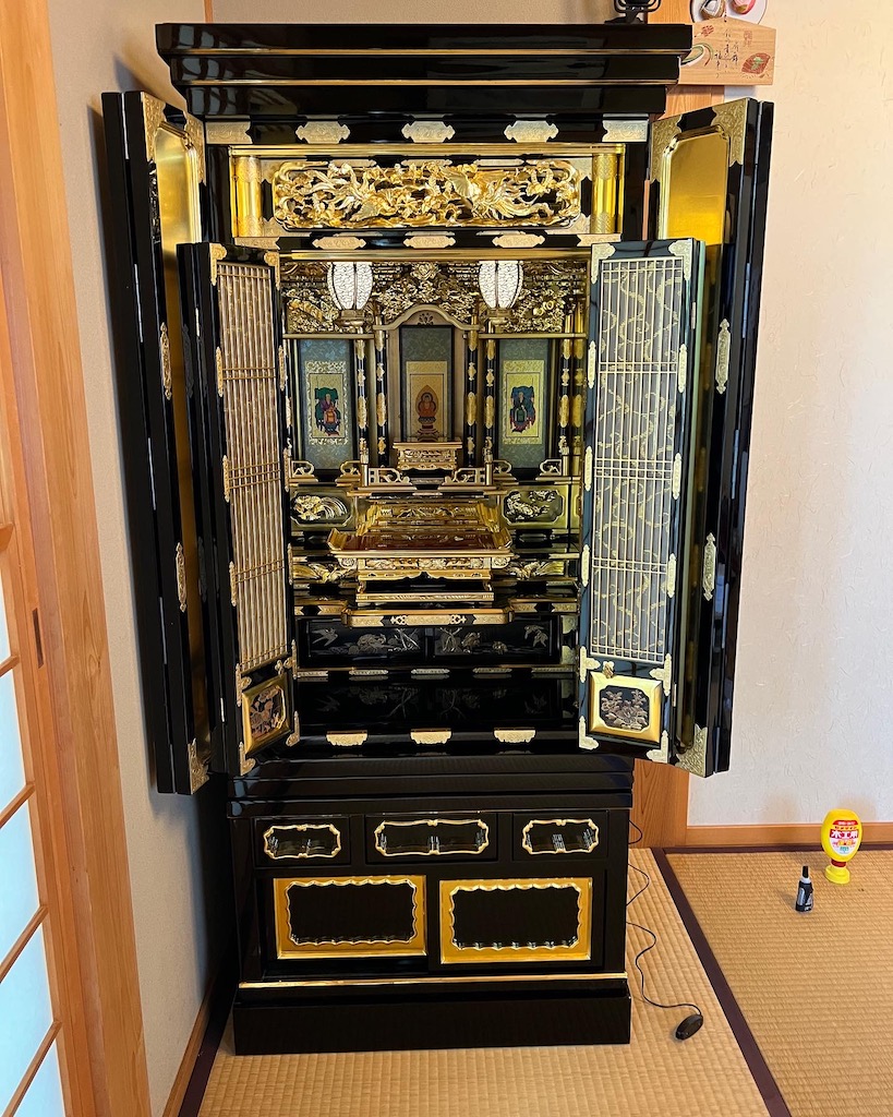 金仏壇お洗濯 櫻井様 befor after私の代のうちに仏壇を綺麗にして次世代に引き継いでいきたい ご先祖様が名古屋から引っ越してきた時に持ってきた金仏壇でした。かなり傷んでいたのでどのくらいまで直したいか聞いたところ、ご先祖様から引き継いだものなのでこれからも引き継いでいきたいとのことでした。それならクリーニングよりもお洗濯だと思いお洗濯をご提案しました。金額的にはクリーニングよりかなり高くなりますが、木地から手をいれ金箔も全て貼り直しするのでほぼ見た感じは新品になりました。施主様も仕上がりを見て涙が出そうなくらい喜んでおられました。ありがとうございました。
