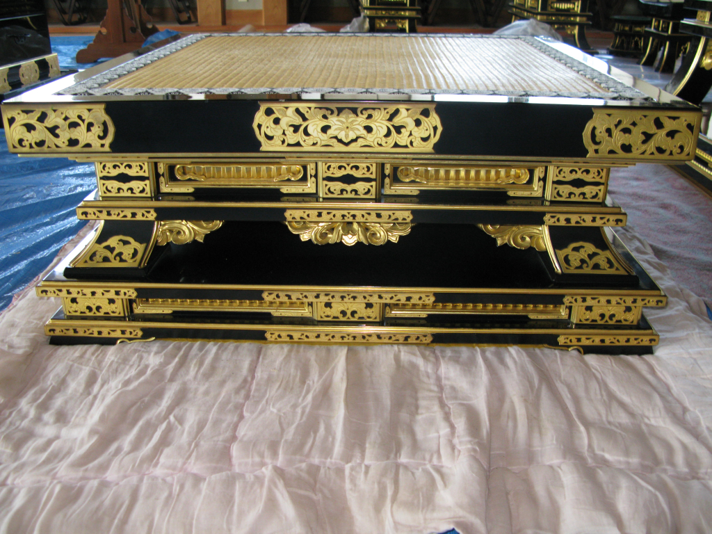 ウエダジャパンの仏具洗浄は、ご家庭にある香炉や花立をはじめ、りん・灯立・高杯などのお仏具全般です。お寺様などでは、天蓋・常花・幢幡・登高座・六面器など、内陣仏具に関する全てを洗浄させて頂いております。また、仏具以外でも、山号額や火縄銃、籠などの洗浄施行例もございます。